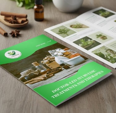 This brochure was designed for an Ayurvedic Wellness Centre offering holistic healing and traditional treatments. The goal was to create a premium yet grounded visual identity that reflects Ayurveda’s essence — balance, purity, and natural harmony.